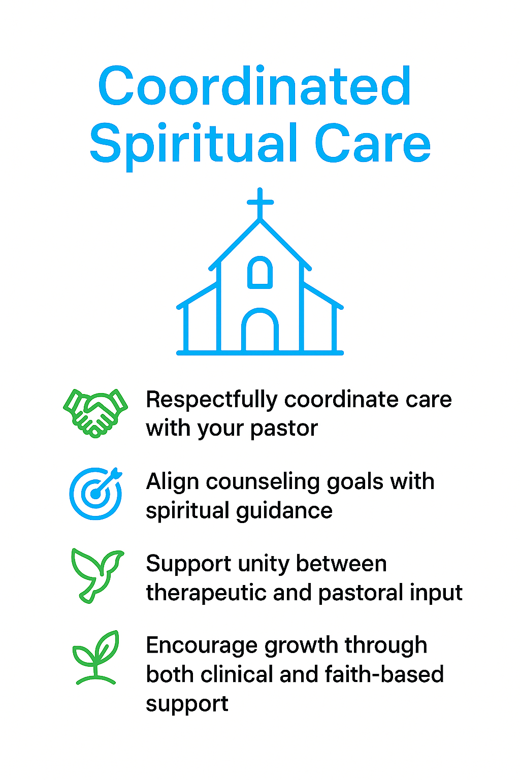 Our whole-person, Christian counseling approach integrates faith and clinical excellence. Your counselor attends to mind, body, and spirit, combining evidence-based therapies with biblical wisdom, prayer, and Scripture upon request. We explore habits that support wellness—sleep, movement, nutrition, and community—and help you apply Christian practices that cultivate peace, resilience, and purpose. Sessions move at your pace and respect your denominational background. The goal: practical progress that strengthens emotional health and deepens your walk with Christ in daily life.